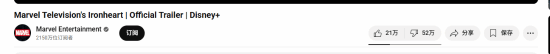 不过,即使有钢铁侠的支持,群众们的眼睛依然是雪亮的:《钢铁之心》近日新公开的预告收获了超过52万观众的点踩。“钢铁之心”莉莉·威廉姆斯最初于2016年在漫画《无敌钢铁侠》中首次登场,当时正值漫威内部的“多元化”改革,因此这个角色及其相关内容有着非常浓重的DEI色彩,真人剧中还有酷儿角色,在这个反DEI浪潮风起云涌的现在,观众和粉丝们对于这个角色和IP的讨厌也可想而知。